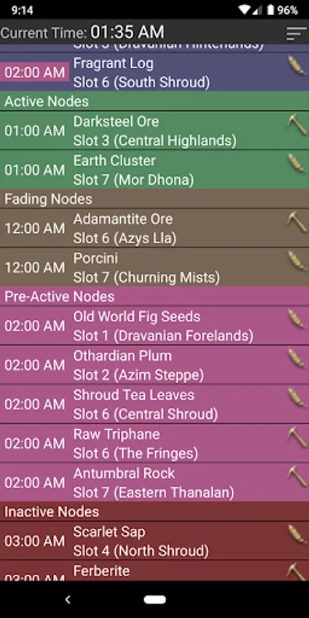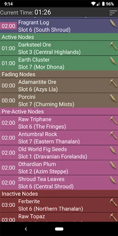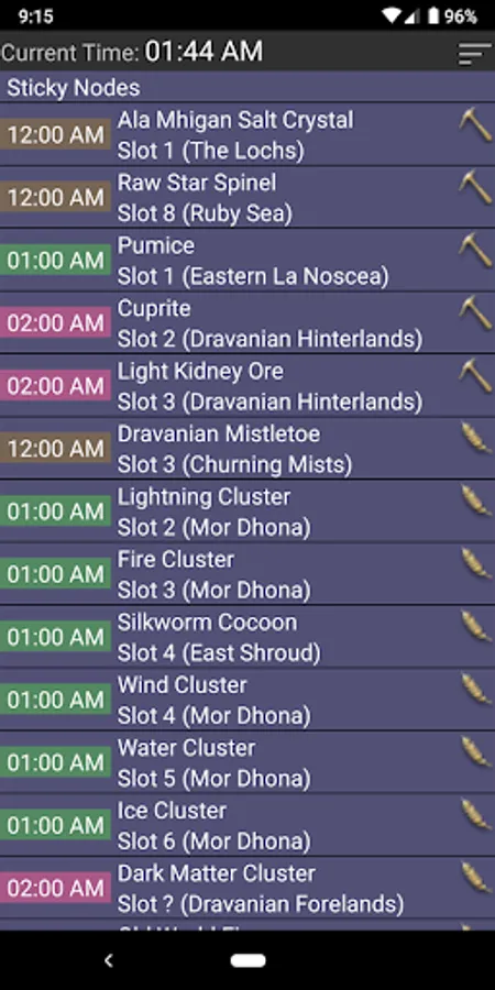 Eorzea time, and unspoiled/ephemeral/legendary gathering nodes for arr/hw/sb/shb/ew.