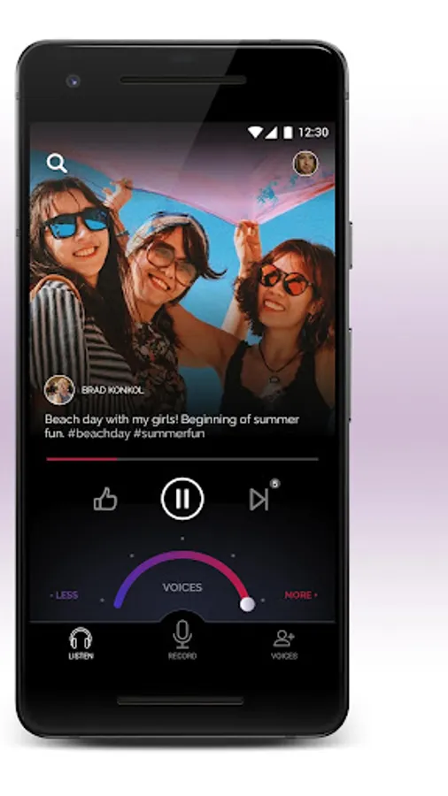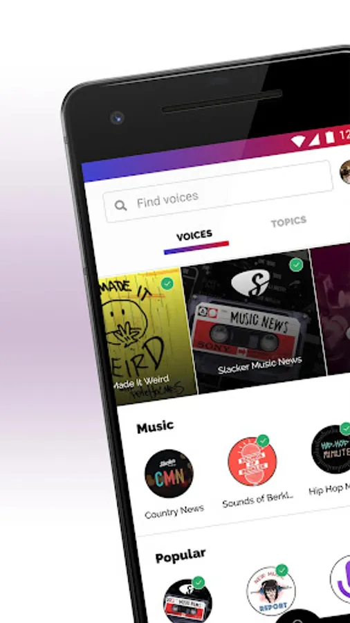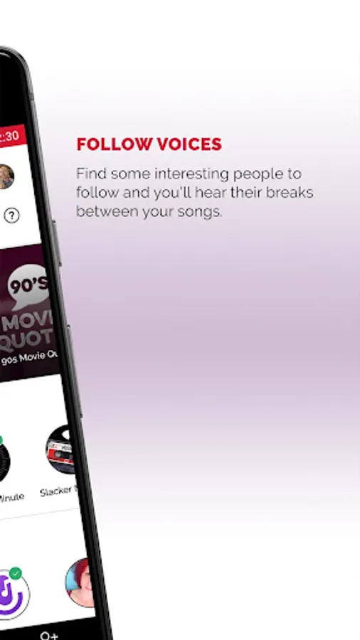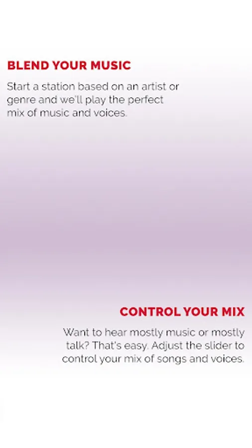 Pick your favorite station and start listening. Find some interesting people to follow and you'll hear their voices between your songs. Want to listen to Today's Hits, but hear the voices of your best friends pop in after a few songs? You can do that. Want to listen to classical music but hear ABC News headlines and podcast comedy clips pop in after a few songs? You can do that. Want to hear mostly music or mostly talk? Yeah, you can do that too. YOU control the mix of songs and voices.