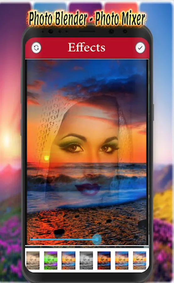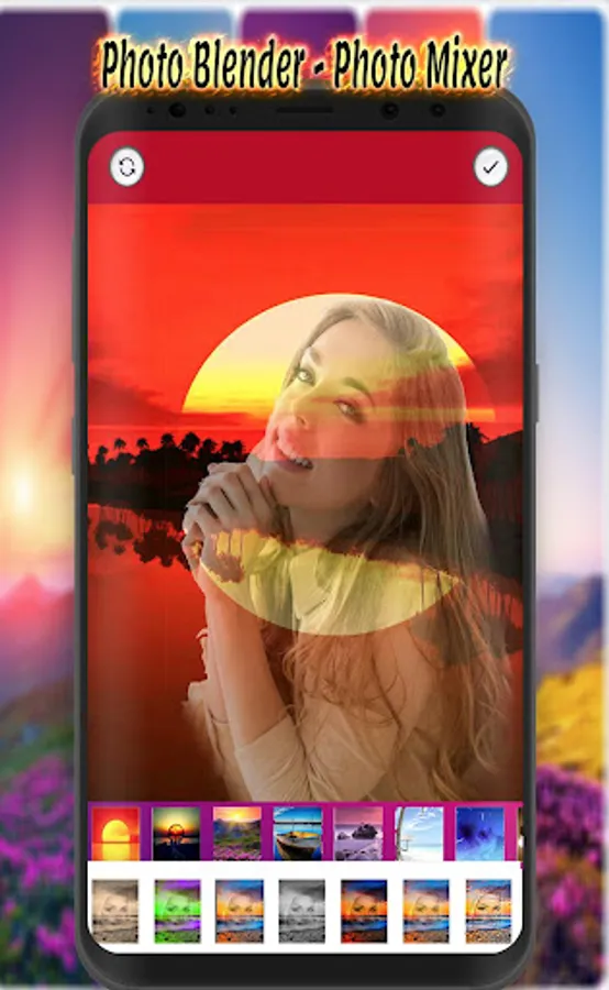 Also it gives wide range of blending effect. Just load your image from gallery or camera and pick the best available theme, and you are done with awesome photo blender image