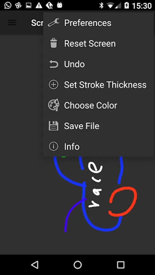 Use your finger or a stylus. Save the file to the Pictures directory on your phone to share it. Change color and line thickness, Undo last strokes. Bucket fill last shape.