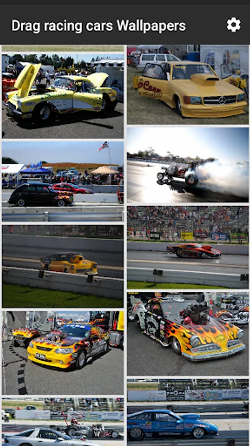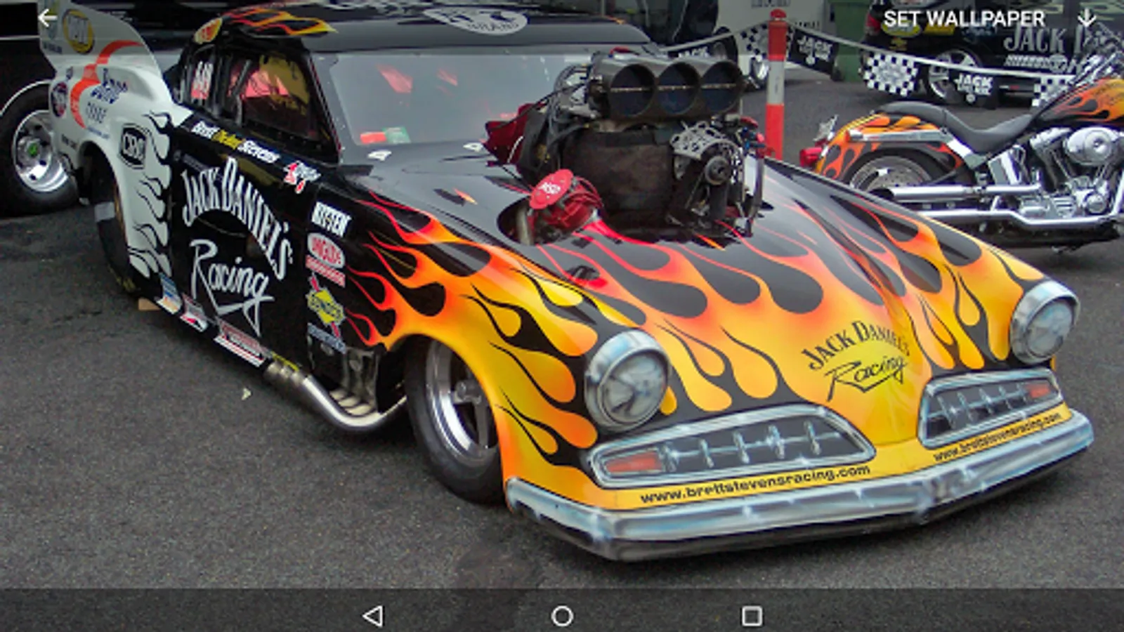 If you like drag racing cars, racing cars,drifting cars,cars with powerful motors then this app is for you!Drag racing is a type of motor racing in which automobiles or motorcycles compete, usually two at a time, to be first to cross a set finish line. The race follows a short, straight course from a standing start over a measured distance, most commonly ? mile , with a shorter 3/16 mile becoming increasingly popular, as it has become the standard for nitromethane-powered Top Fuel dragsters.The most common subjects are race cars, motorcycles and boats with reciprocating engines. However, there are competitions for jet cars and motorcycles, electric cars, scooters, bicycles and even tractors and lawn mowers. After downloading the application, you immersed in the world of drag racing cars wallpaper.