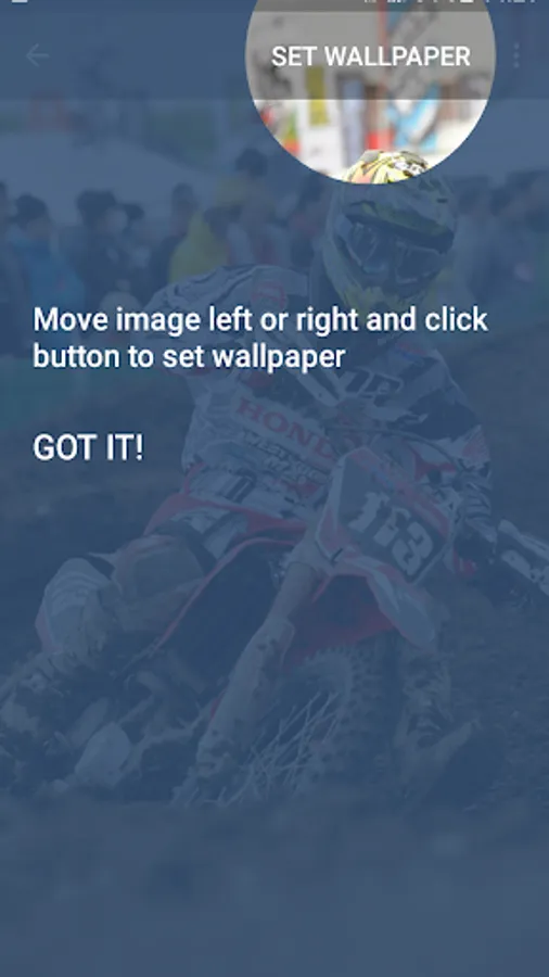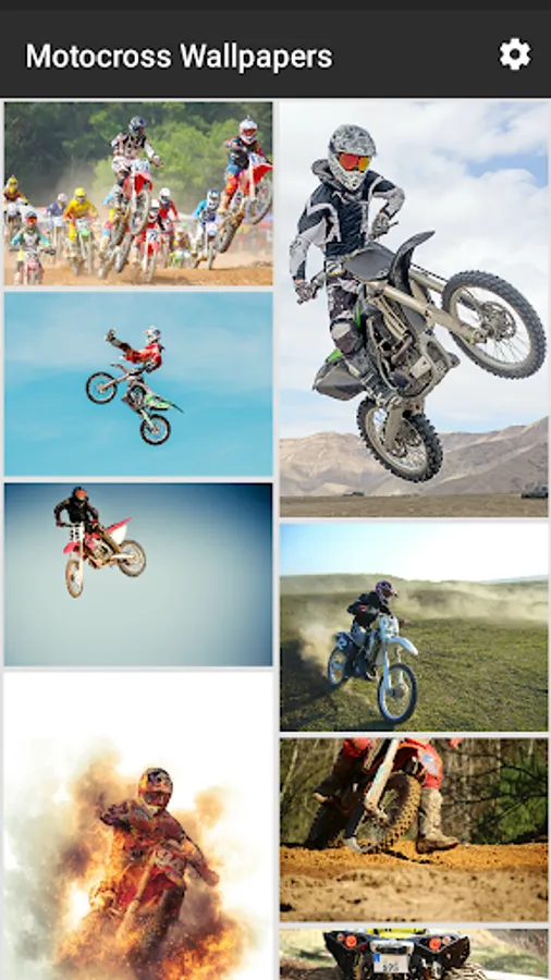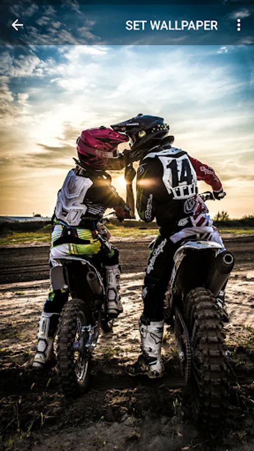 If you like motocross, motorcycle trials,bikes, then this app is for you! Motocross is a form of off-road motorcycle racing held on enclosed off-road circuits. The sport evolved from motorcycle trials competitions held in the United Kingdom.Freestyle Motocross (FMX), a relatively new variation of supercross, started out by the South African champion, Marco Urzi, does not involve racing and instead it concentrates on performing acrobatic stunts while jumping motocross bikes. After downloading the application, you immersed in the world of tuned motocross wallpaper.