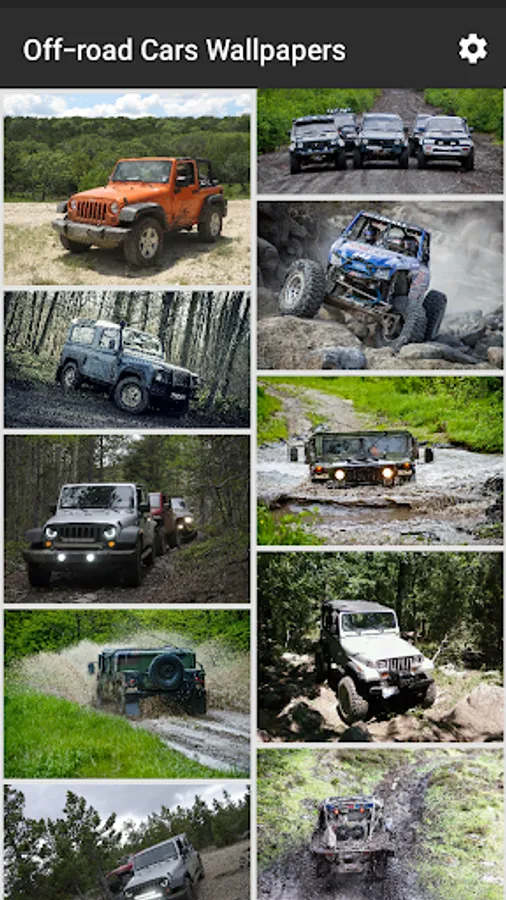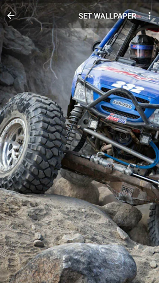 If you like Off-road cars, racing cars,big cars, then this app is for you! An off-road vehicle is considered to be any type of vehicle which is capable of driving on and off paved or gravel surface. It is generally characterized by having large tires with deep, open treads, a flexible suspension, or even caterpillar tracks. Other vehicles that do not travel public streets or highways are generally termed off-highway vehicles, including tractors, forklifts, cranes, backhoes, bulldozers, and golf carts. Cars off in common parlance are called jeeps. Off-road vehicles have an enthusiastic following because of their many uses and versatility. Several types of motorsports involve racing off-road vehicles. The three largest "4-wheel vehicle" off-road types of competitions are rally, desert racing, and rockcrawling.After downloading the application, you immersed in the world of Off-road cars wallpaper.