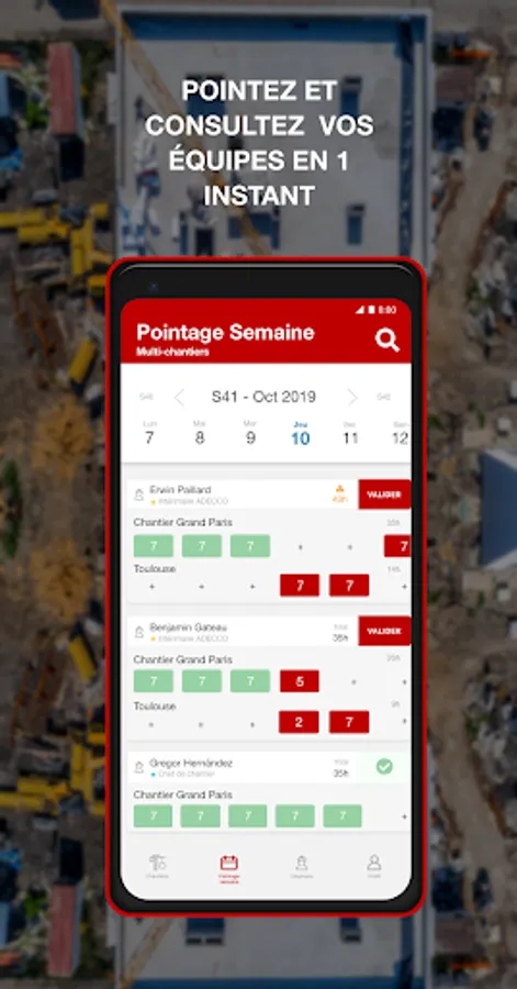 Effortless pointing of your teams on your sites, and find the daily details (positions, bonuses, absences, etc ...)