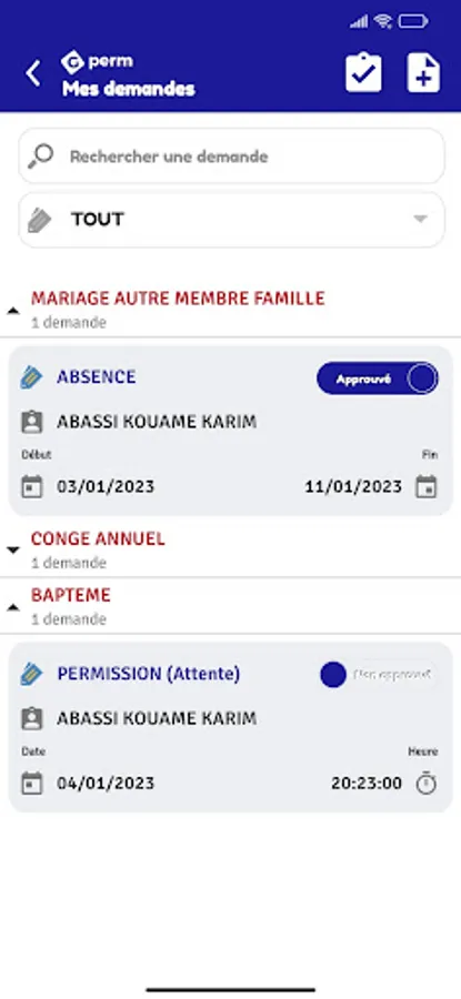 Management of permission requests.