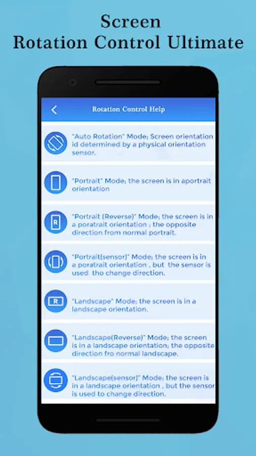 So, control your orientation with following these features. this is an amazing way to control your screen rotation with one click with your choice. The one and only Screen Rotation Control Ultimate App that can really lock your screen in any orientation and also force the automatic orientation to an app with specific settings. it's easy and simple to use. install an application in your mobile phone and set rotation according to your choice.