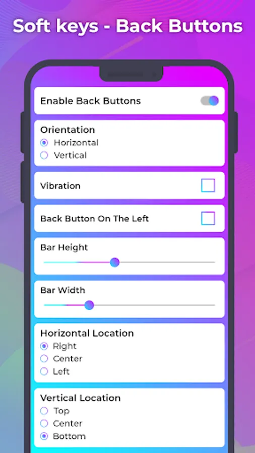 Soft Key Back Buttons enables you to customize your navigation bar by applying different themes on navigation bar.you can set Height, Width and color of the navigation bar.
