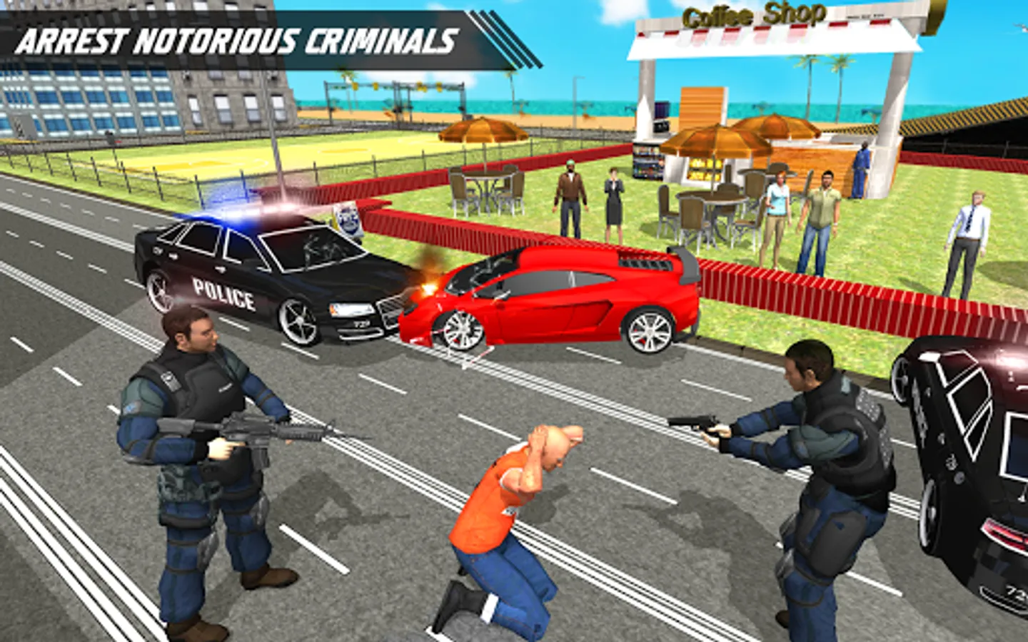 In this police cop simulator game, drive, chase, dodge, and pull over busy crime city traffic who are breaking laws and bothering other drivers. During Police Car Chase, You can race and chase down any car in the game, whether NY Police car, taxi's, ice cream trucks, and angry traffic to earn rewards and unlock new faster authentic police cars with unique gameplay, controls and designs! Discover many Racing Car Pursuit missions for endless enjoyment. You will encounter gangster squad trying to rob banks and shops, so use the NY Police car to stop the heist in this police chase simulator. If the gangster squad escapes, you will be involved in thrilling gangster car chase with just like the movies! Uphold justice in the crime city in this police simulator. Gangsters will have hostage so becareful when you damage the gangster car with your NY Police car. Do your duty as the NY Police, encounter police car chase and become the best in this police chase simulator by nabbing gangster squad!
