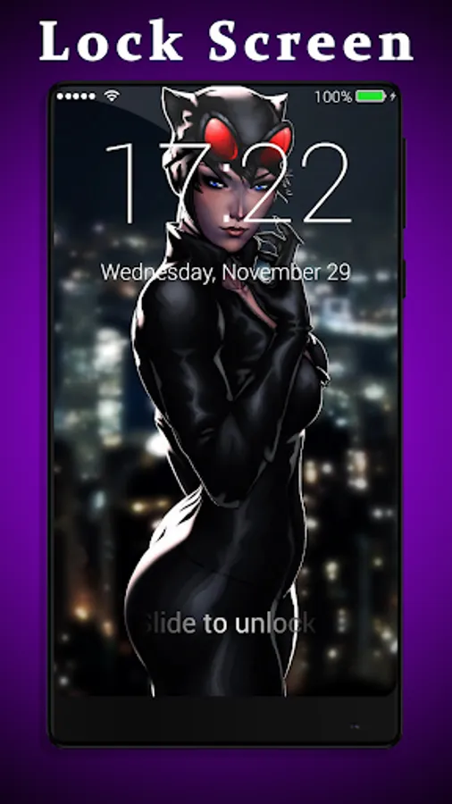 With this Art Cat Woman Lock Screen you can not only Slide to unlock your screen lock,but also Set password/passcode/pattern/pin to enhance your phone security.