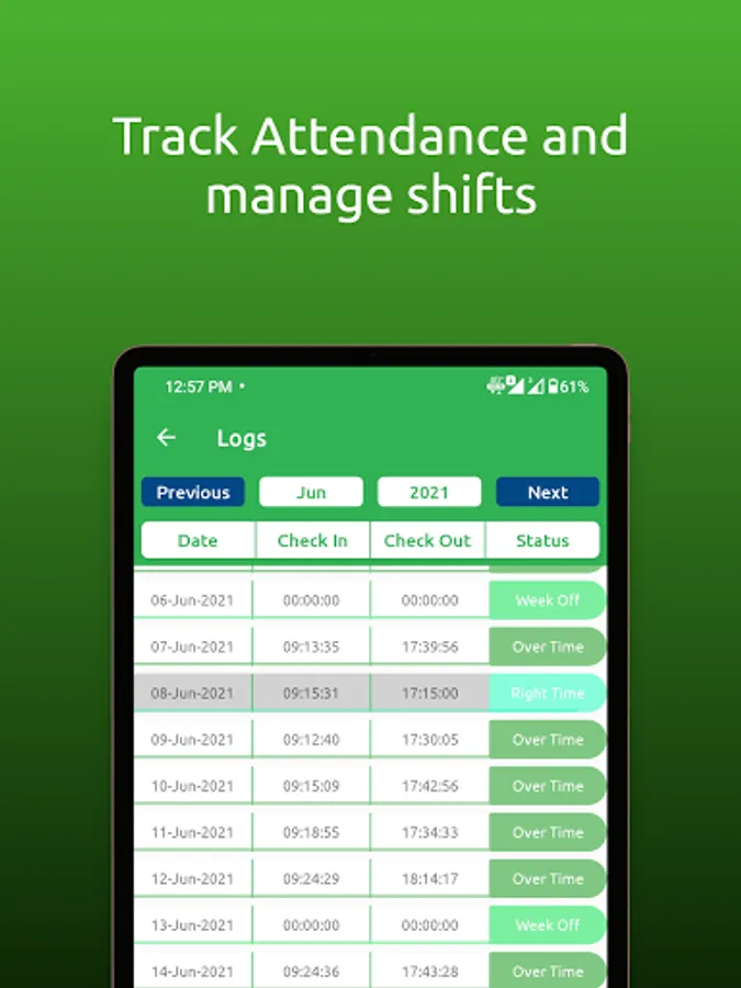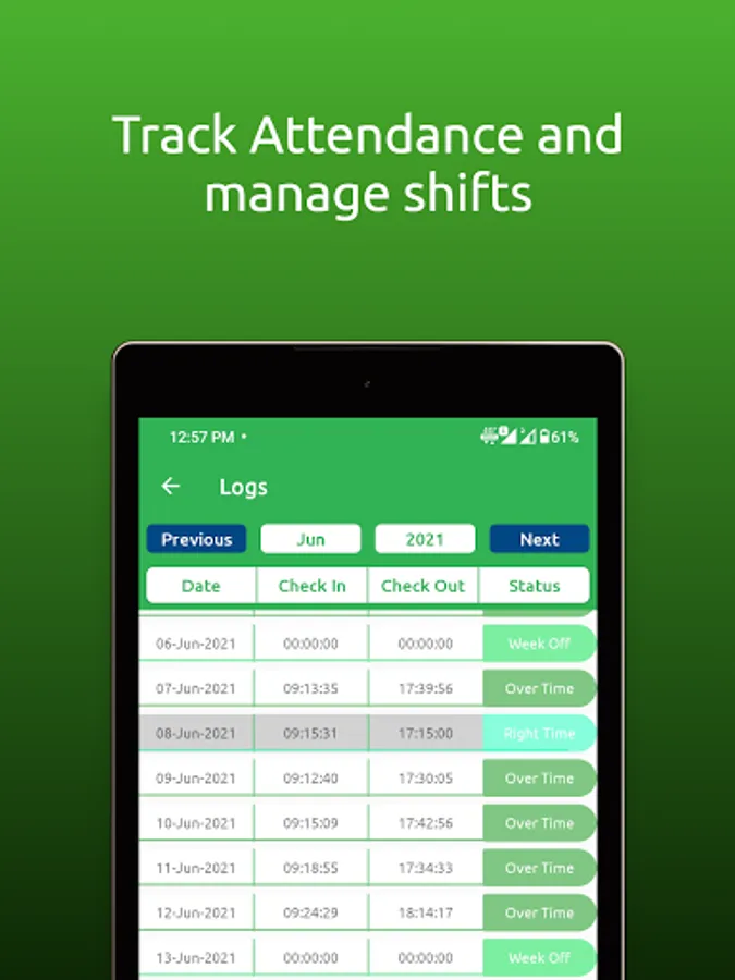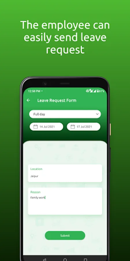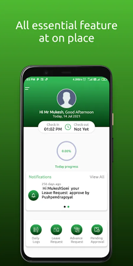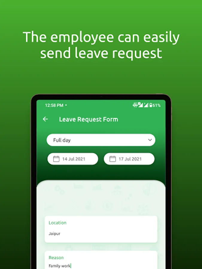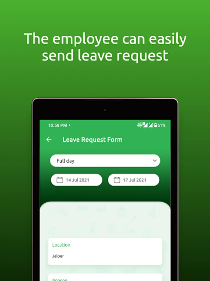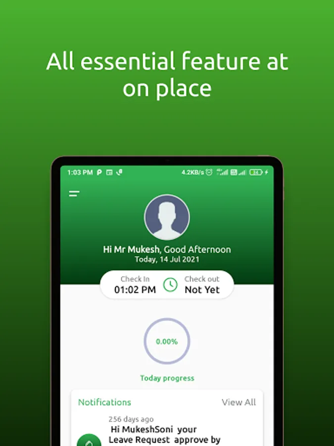 To use check in checkout feature, you need to have a account created by HR. The attendance app tracks your location via GPS and displays it on your phone as the clock-in location. You can clock-in by simply long press on the fingerprint animation.