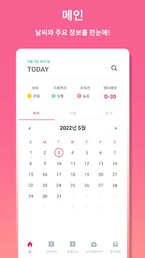 ▶ 미리 준비해드려요: 생리기간, 가임기, PMS 시기 등에 대한 정보를 먼저 알려드려요.