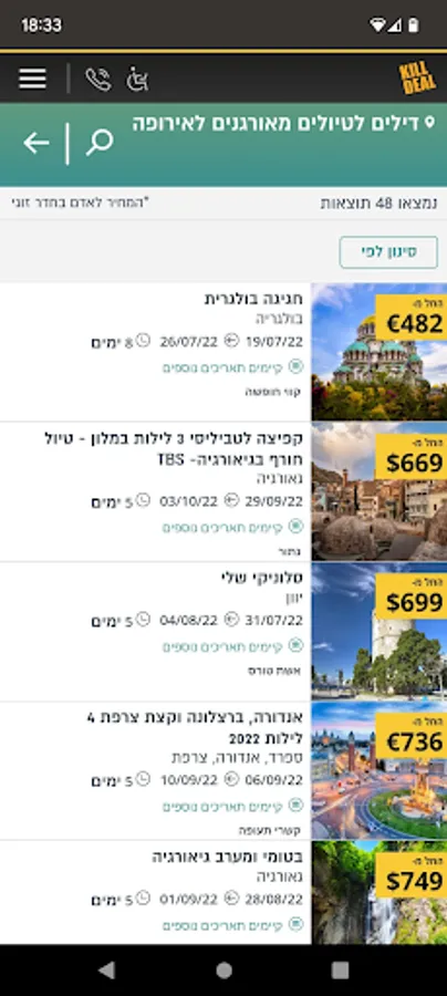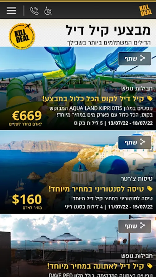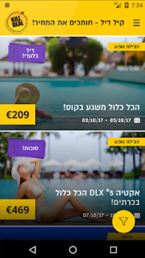 Every day we organize for you flights and a variety of deals in Israel and abroad at crazy Kill Deal prices!