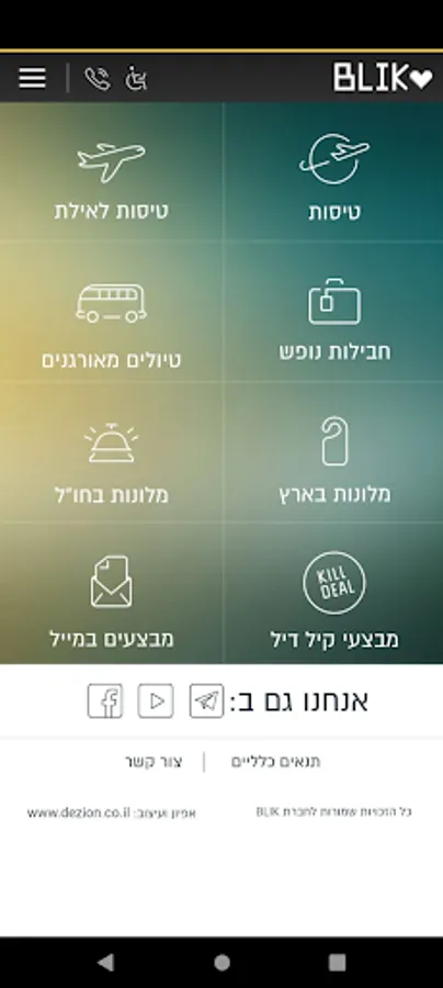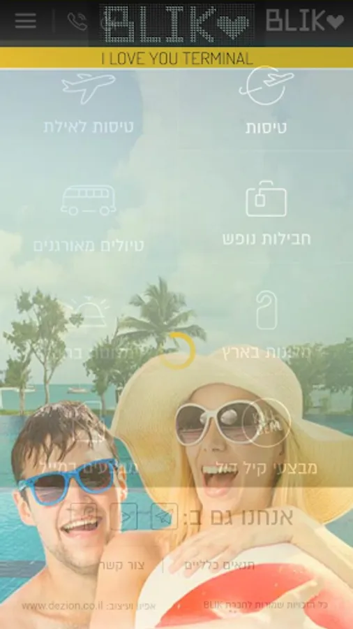 Belik Tourism is a company that aims to provide its customers with a wide variety of services, including flights to the beach, hotels on the beach and hotels in Israel, organized tours, flights to Eilat, deals, to the Dead Sea, car rentals and cruises, a variety of products at attractive prices through experiential surfing.
