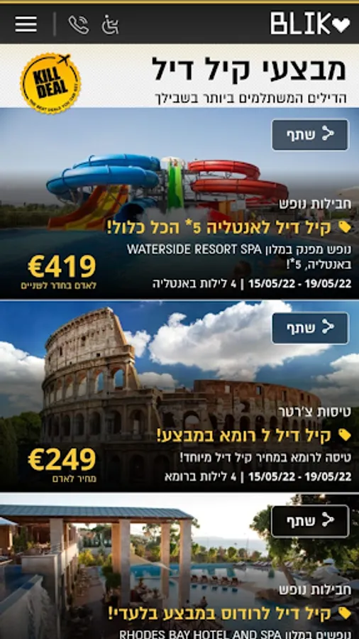 In the application you can find deals to the Dead Sea and deals to Eilat including flights to Eilat
