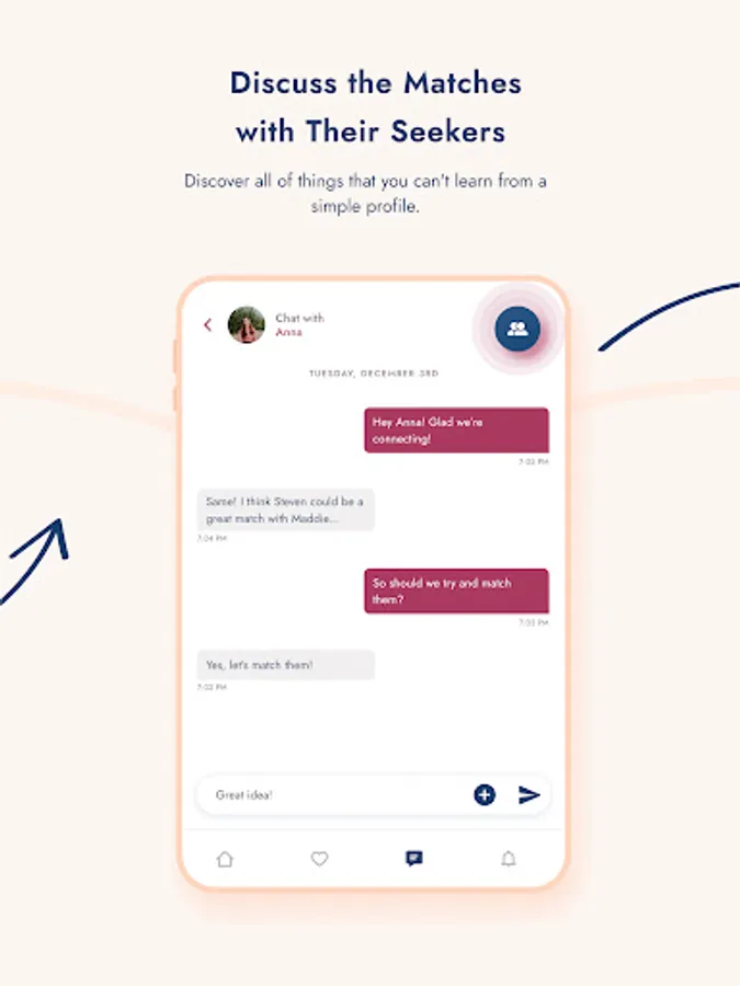 - If two seekers find a match for their blindas, then those two seekers are put into a chat