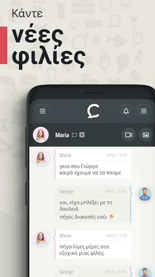 State your preferences "gender", "age", "region" and connect directly to chat with thousands of BlindChat users from all over Greece. Whenever you want, you can change the caller just by pressing a button.