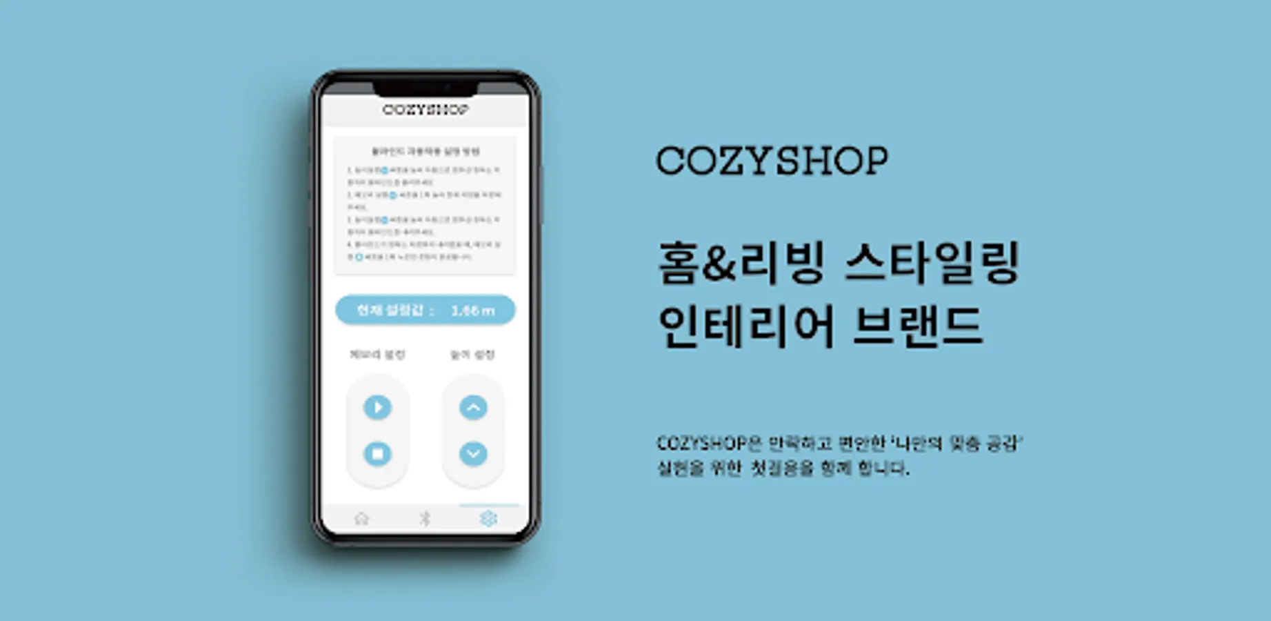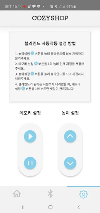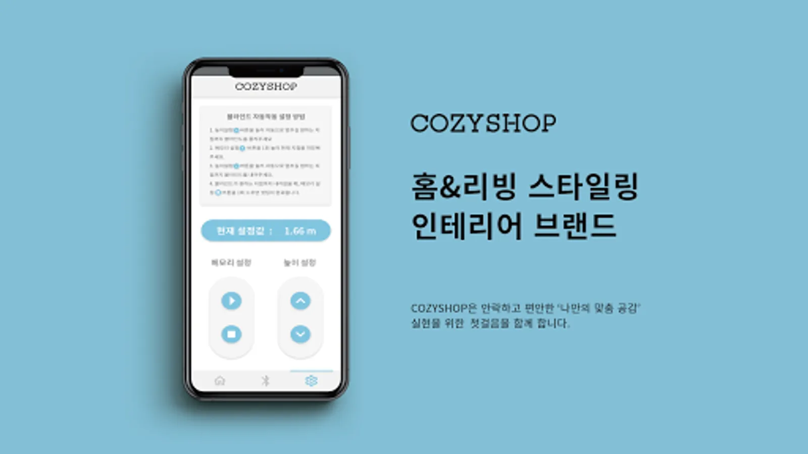 This app is equipped with a function that can wirelessly adjust the blind products of Cozyshop companies through Bluetooth connection. It will make your life more convenient as you can conveniently raise and lower your blinds even when you sit in place.