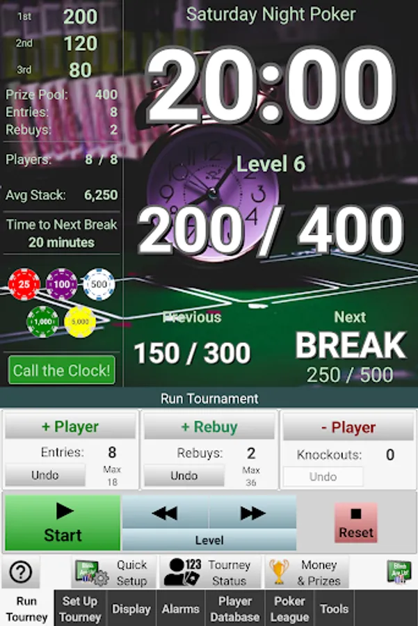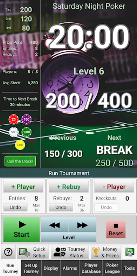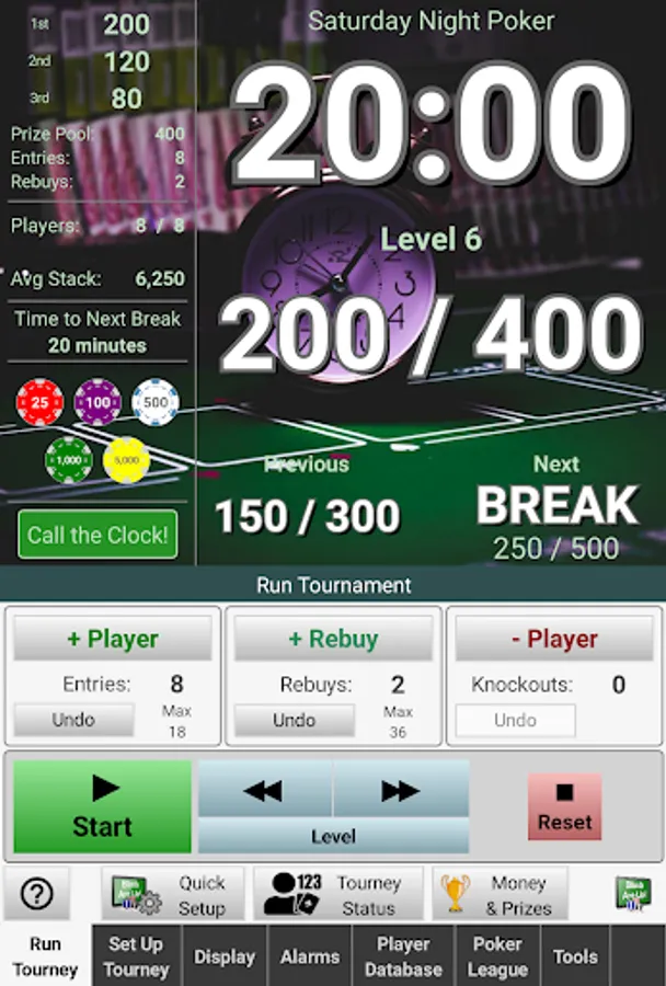 • Track and show the current number of players, rebuys, add-ons, and bounties.