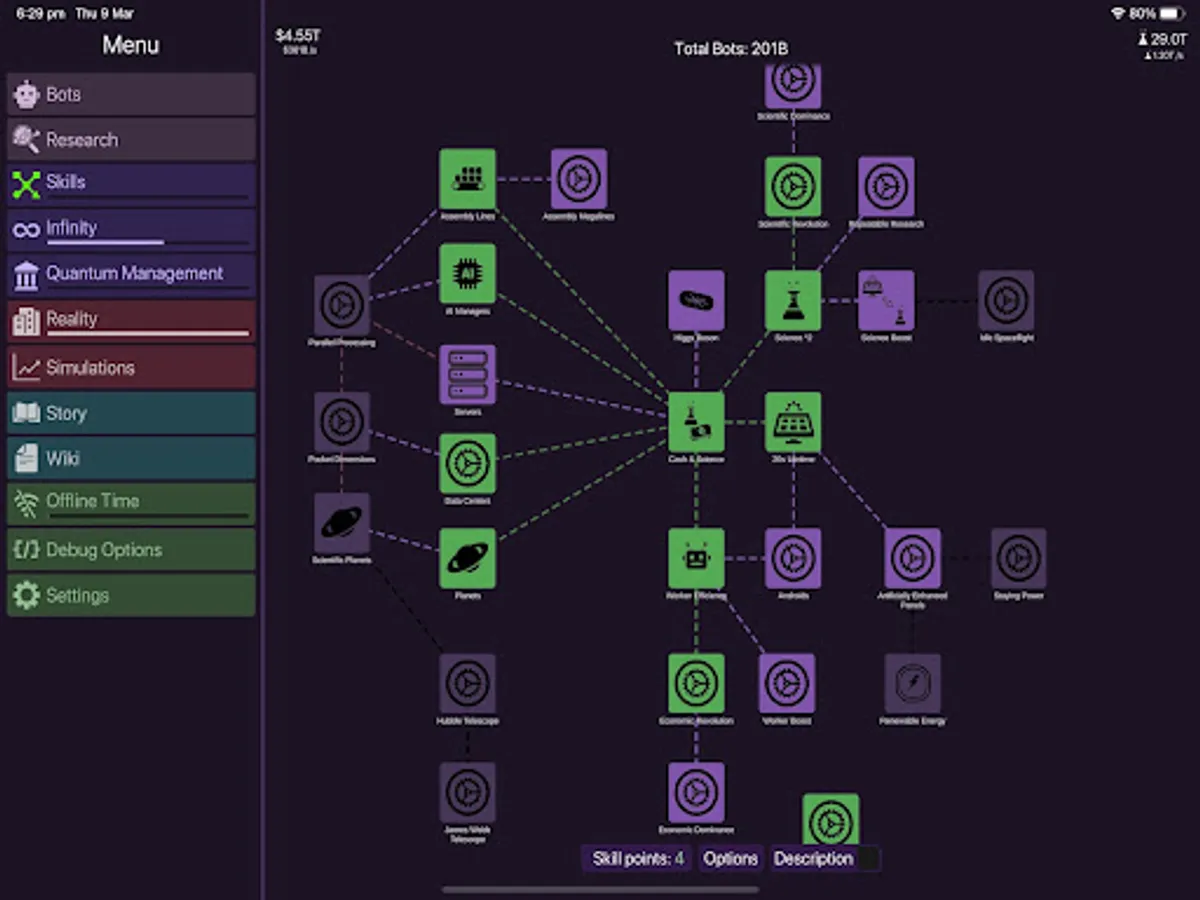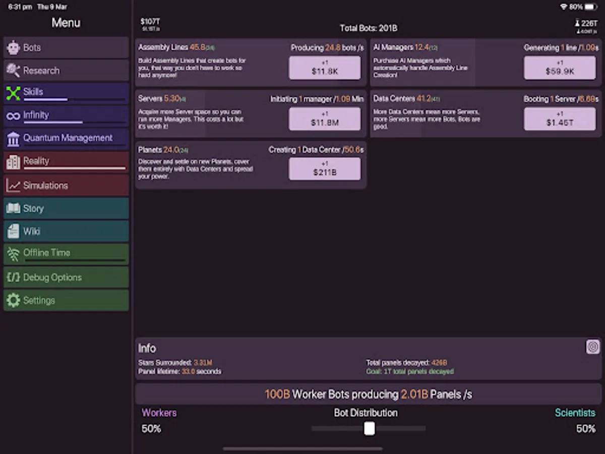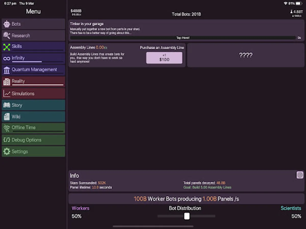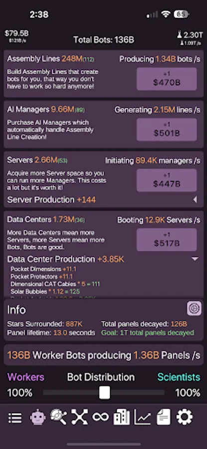 Build up an empire of robots that make solar panels for you, send them to stars to produce power, sell the power and make more robots!