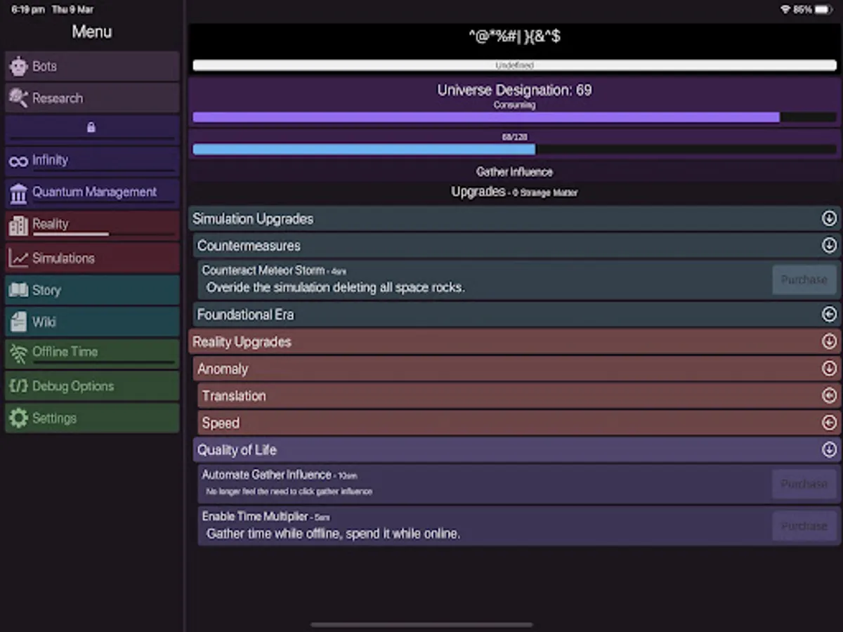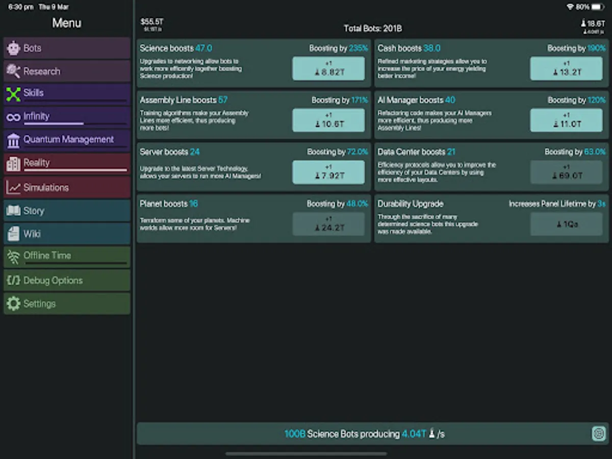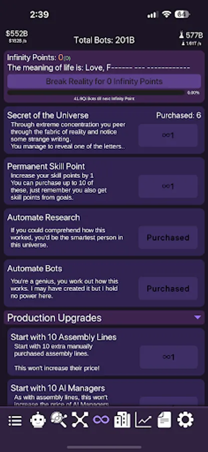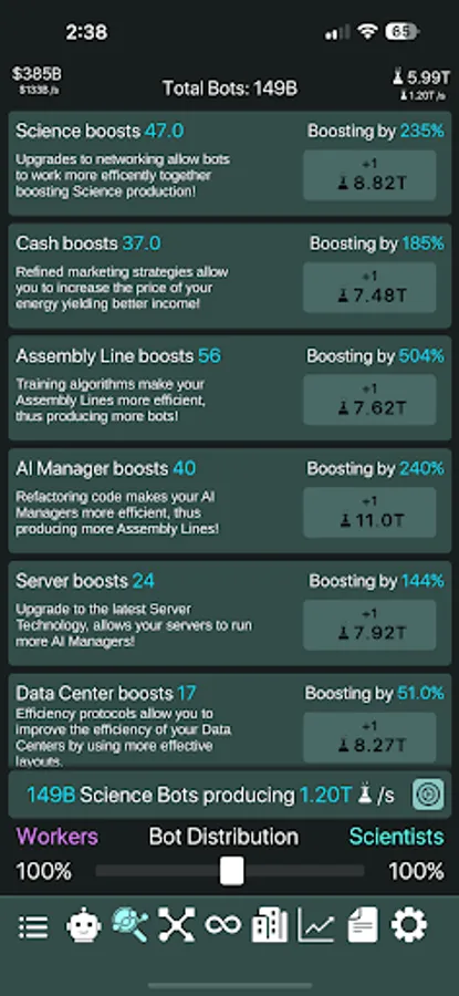 Build up an empire of robots that make solar panels for you, send them to stars to produce power, sell the power and make more robots!