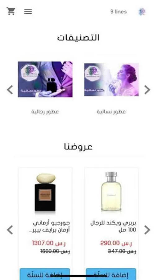 B-Lines is the largest perfume website in the Kingdom We provide shipping to all regions of the Kingdom and the Arabian Gulf Payment on delivery service is also available, as well as payment by Mada, Visa and MasterCard | B Lines is the largest perfume website in the Saudi Arabia and Arab Gulf States | We provide shipping to all regions of the Kingdom and the Arabian Gulf.