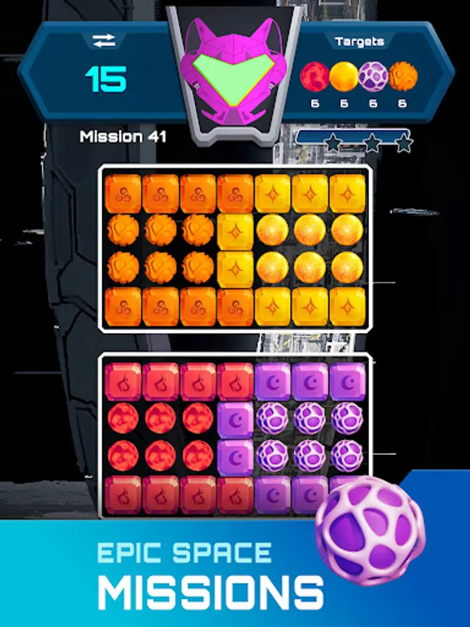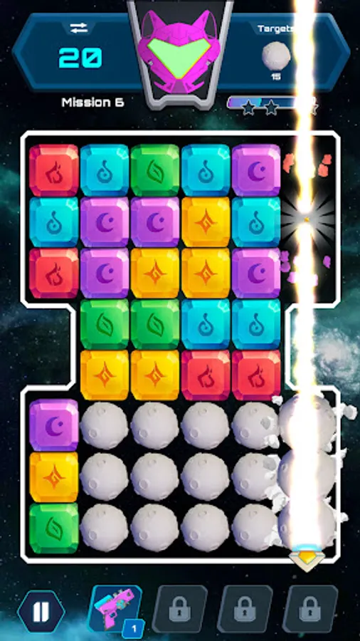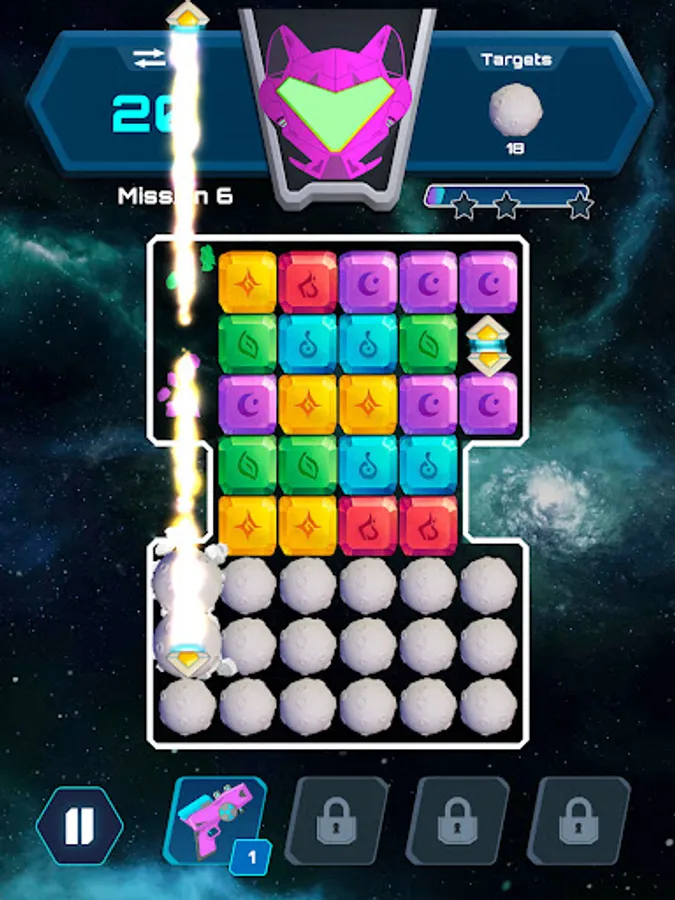 In each celestial Ethereum packed mission it’s your job to break like-colored Ethereum element stones in order to collect the targeted items found in the top right corner. Each mission will provide you with different targets to collect in order to progress to the next mission.