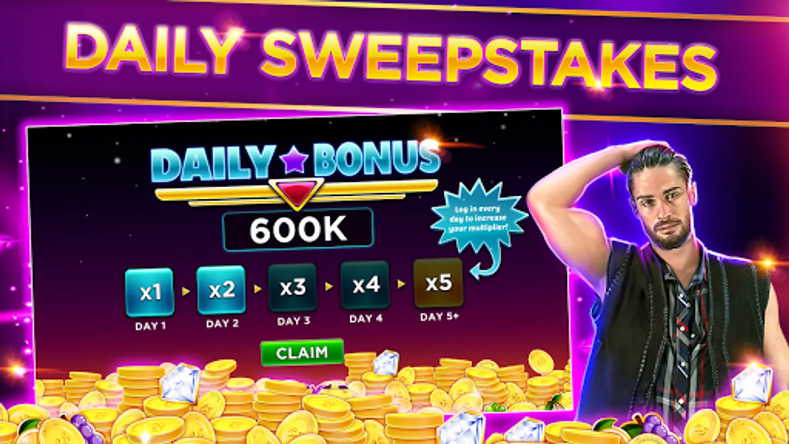 Step 2: Play the Celebrity Slots App to earn Sweepstakes raffle ticket entries. The more you play, the more raffle tickets you’ll earn, increasing your chances of winning a celebrity experience!