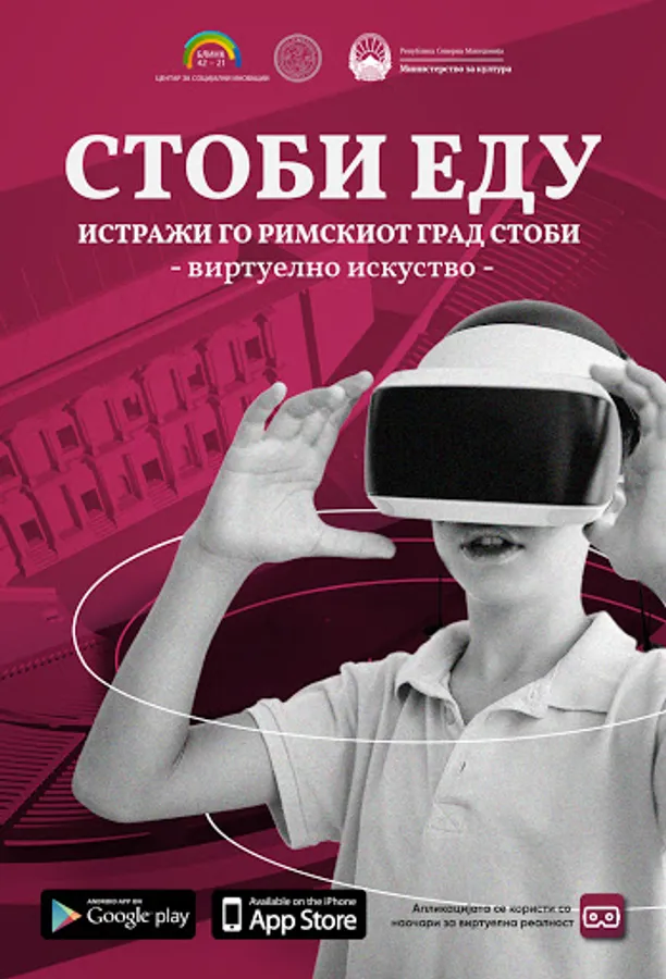 The mobile app was produced within the project "Stobi Edu- Explore the Roman City of Stoby using the VR mobile app" implemented by the Center for Social Innovations BLINK 42-21 in partnership with the National Institution Stobi and with financial support of the Ministry of Culture of the Republic of North Macedonia.