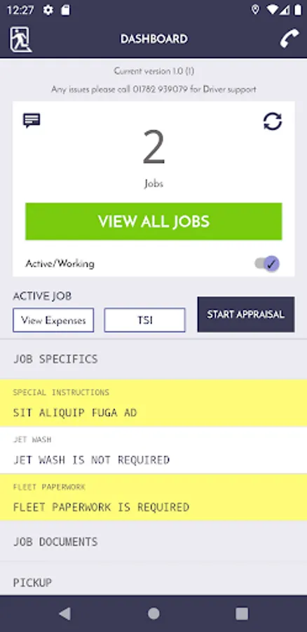 * On Appraisal for pick up and drop off app provide petrol level and mileage and warning lights detail.