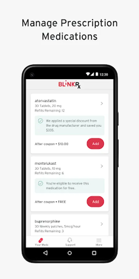 For select medications, BlinkRx is the App for Amazingly Inexpensive Prescription Drug Prices™. Just pay in the app to save, then have it delivered to you at no cost.