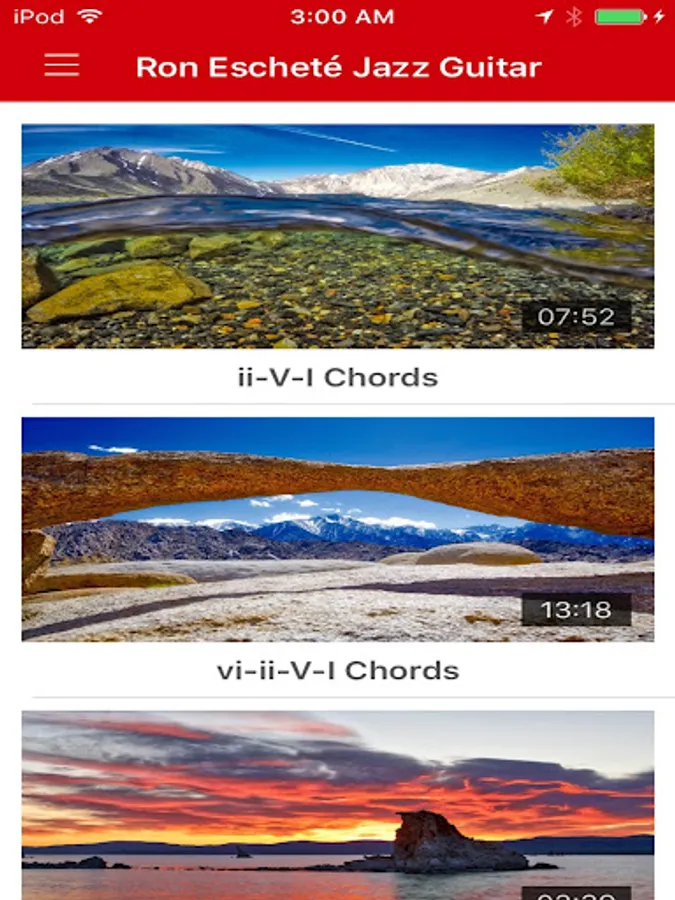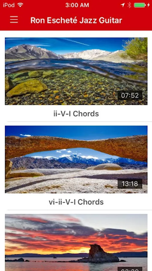This app brings together music and art. Each lesson contains a screenshot of a beautiful landscape taken by master photographer Jay Manning, Instagram @_jaymanning_