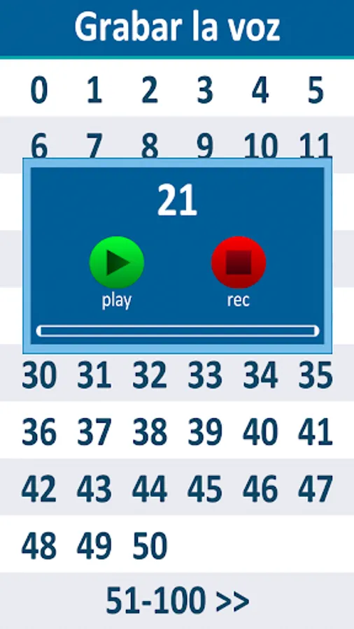 - Define ten different ranges of numbers to show the presentation of points and numbers (literals). Each range is limited to 0-100. When the card appears, you can switch to the next and the next number using the arrows.