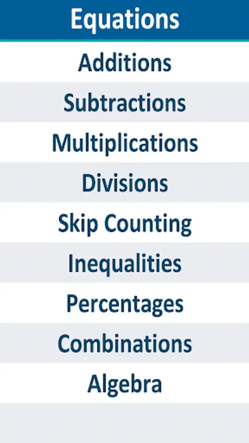 Fullscreen flashcards with the following equations both in dots or numeral format: