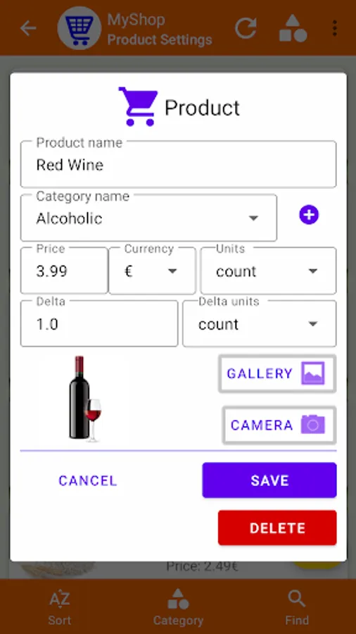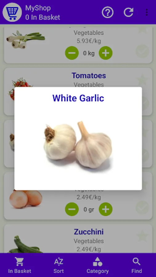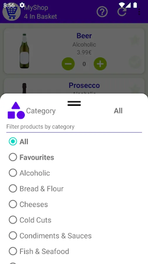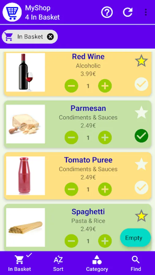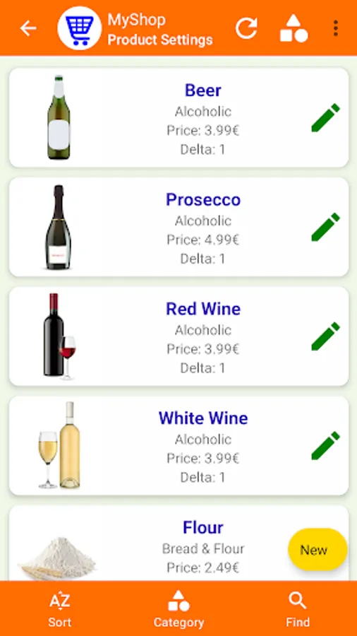 Browse products scrolling the list, sort it alphabetically, filter by category, search by name.