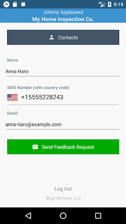 Log in to the app using the username and password you set up when you signed up at BlippReviews.com. Once you've logged in, you can quickly send review requests while you're on the go.