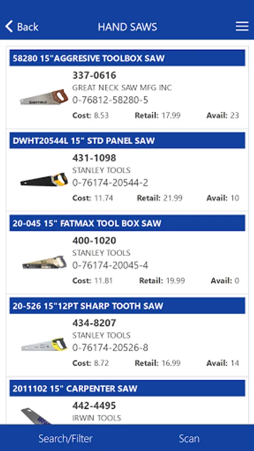 • Customized sorting options - sort by cost, item number, sales volume, and product subcategories