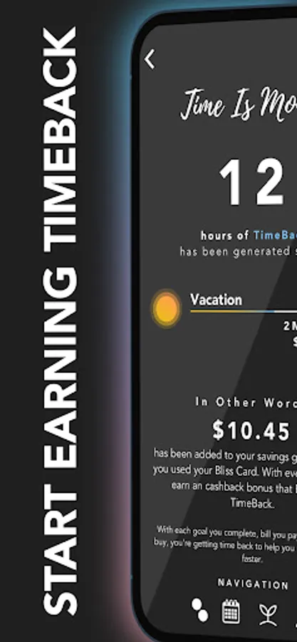 The app provides a host of tools to make managing your money more effortless. Whether it’s our debit cards that give you TimeBack (Bliss’ cash back program), in-app features such as Split or Forecast, or having your dollars invested in U.S. Treasury Bills, Bliss is a reimagined banking experience.