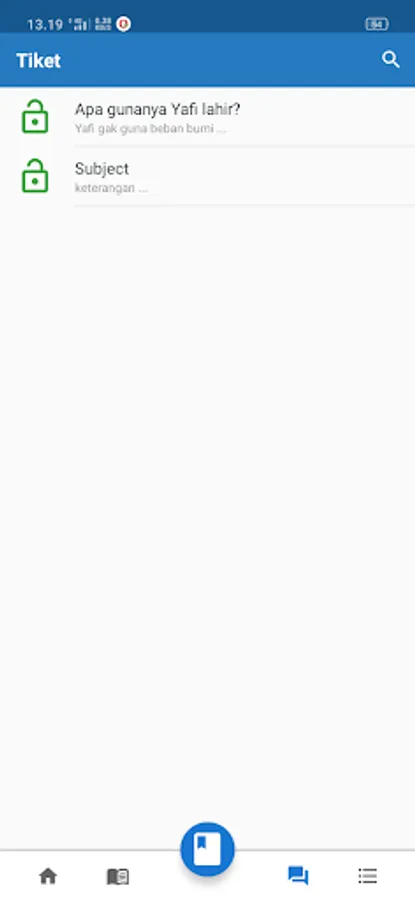 Ticket Support - for direct consultation with the Service Division directly via the application,