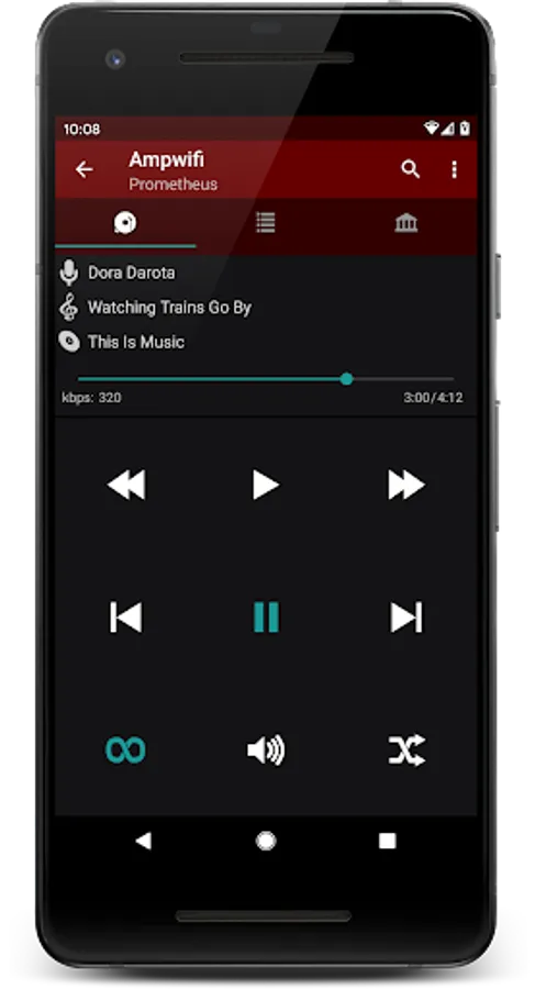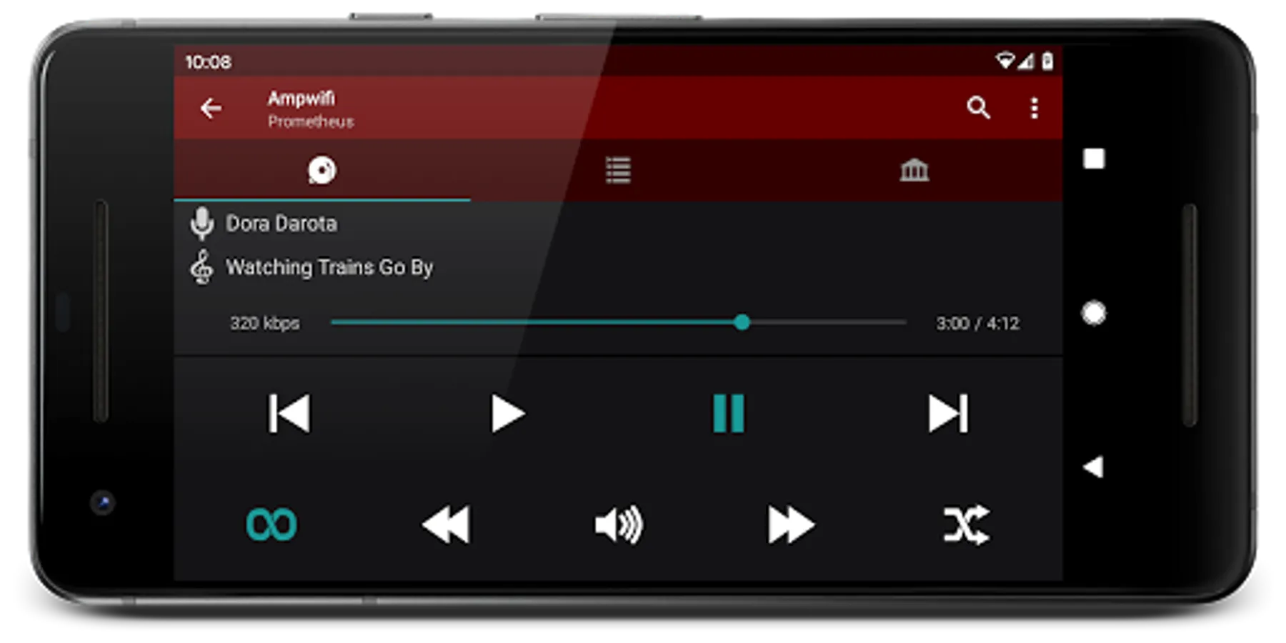 ✦ All basic music playing features: Play, Pause, Stop, Fast forward, Rewind, Next, Previous, Shuffle, Repeat, Mute and full volume control