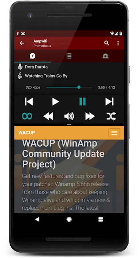 ✦ Stream to device. Songs in your Winamp playlist & music folders can be streamed to your device. Requires a music player app capable of playing streamed audio, such as Google Play Music