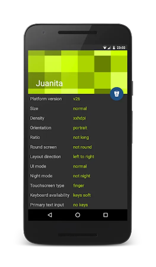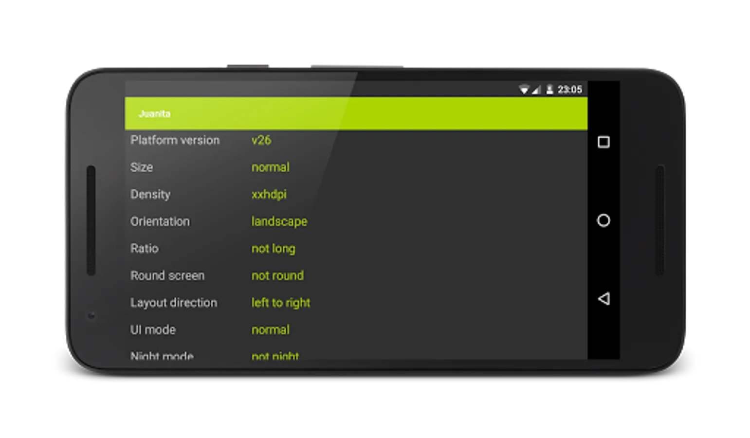 There are so many different devices and it's often not obvious how each device is configured. Android uses configuration qualifiers for it's resources, which means you can use different sets of resources depending on the screen density or orientation. Sometimes it's not obvious what a particular device's screen size or screen pixel density is, but Juanita will tell you.