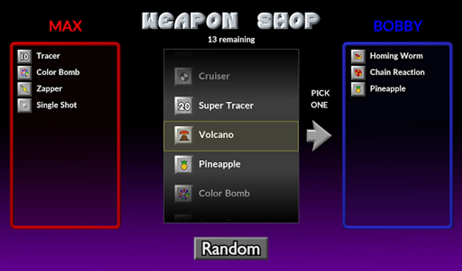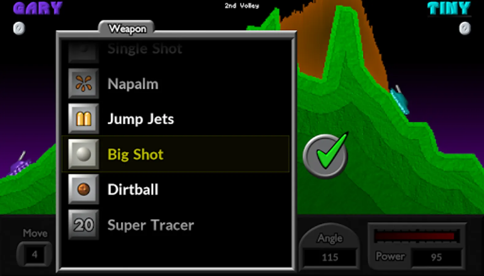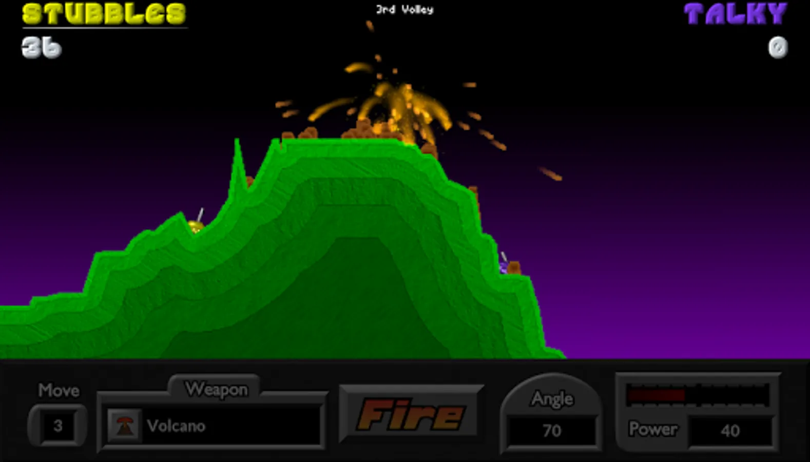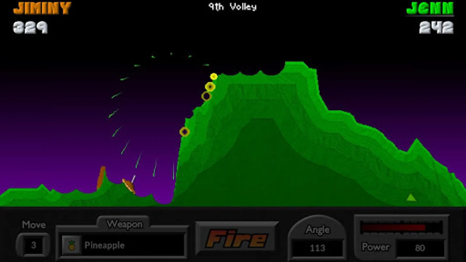 Experience the thrill of launching volley after volley of powerful and fun weapons across the battlefield, using very simple controls. Select your angle, power, and FIRE! Your arsenal of unique and useful weapons includes: Napalm, Firecracker, Skipper, Cruiser, Dirt Mover, and dozens more! This is the light-hearted game of heavy artillery for everyone.