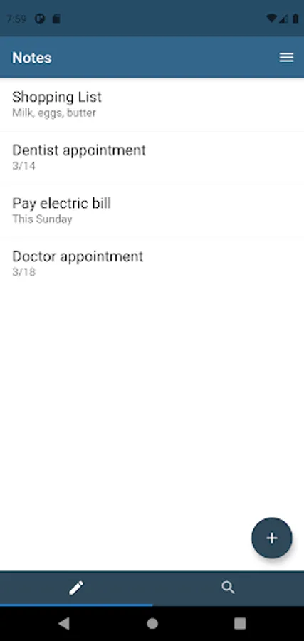 This is an app for taking and storing brief notes on your device. To safeguard your notes, you have the option to authenticate with biometrics. The search tab allows you to filter a long list of notes and easily find the one you're looking for.