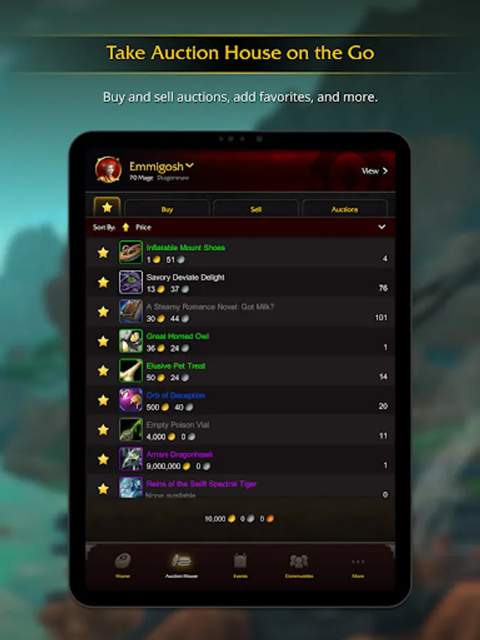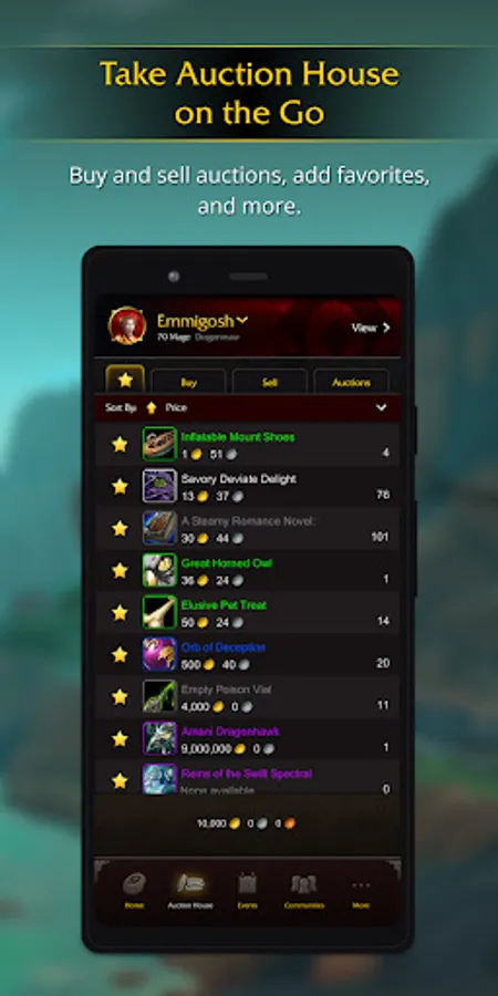 MANAGE YOUR AUCTIONS: Buy and sell auctions, add favorites, and manage listed auctions from the Auction House.