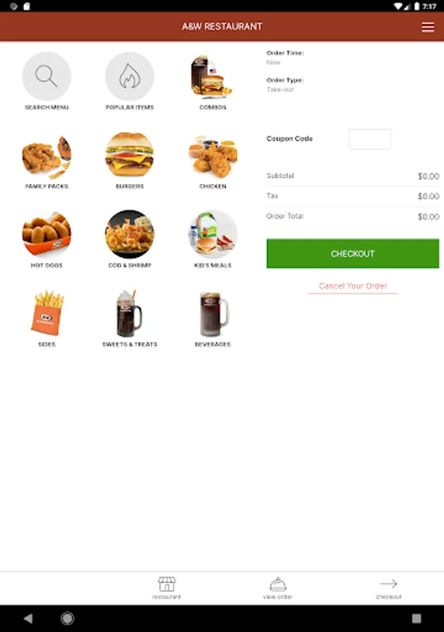 Order from A&W Restaurant Sparks. Now you can save and reorder, save custom menu items and order with a snap!