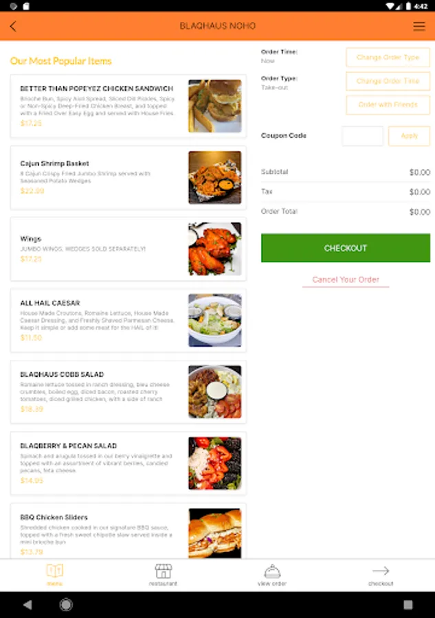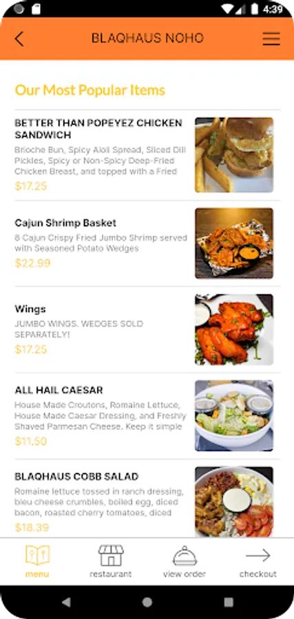 Order from BlaqHaus NoHo. Now you can save and reorder, save custom menu items and order with a snap!