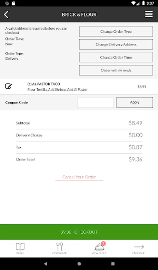 Order online from Brick & Flour. Using our streamlined app you can order quickly with confidence. Full customize your delivery or take-out orders and order again with ease.