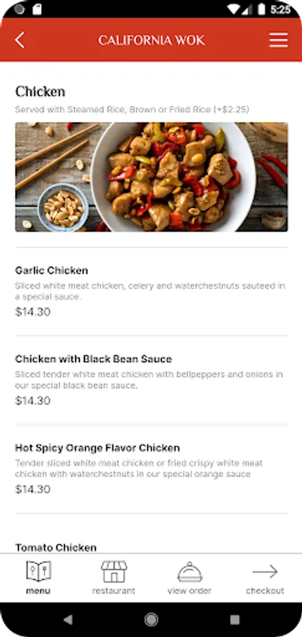 Order from California Wok OC. Now you can save and reorder, save custom menu items and order with a snap!