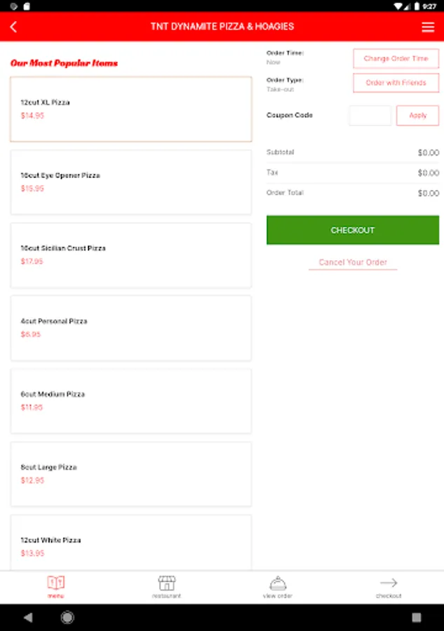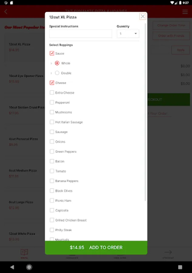 Order from TNT Dynamite Pizza. Now you can save and reorder, save custom menu items and order with a snap!