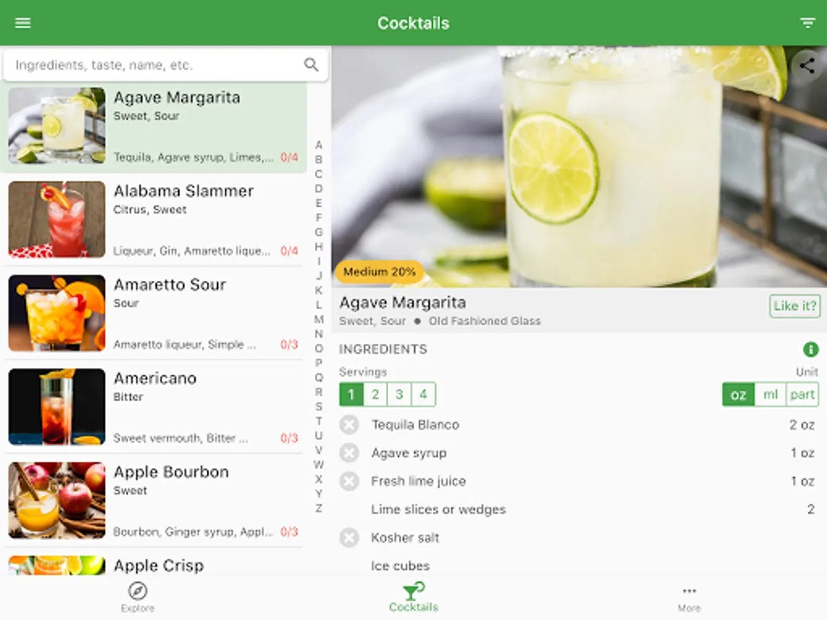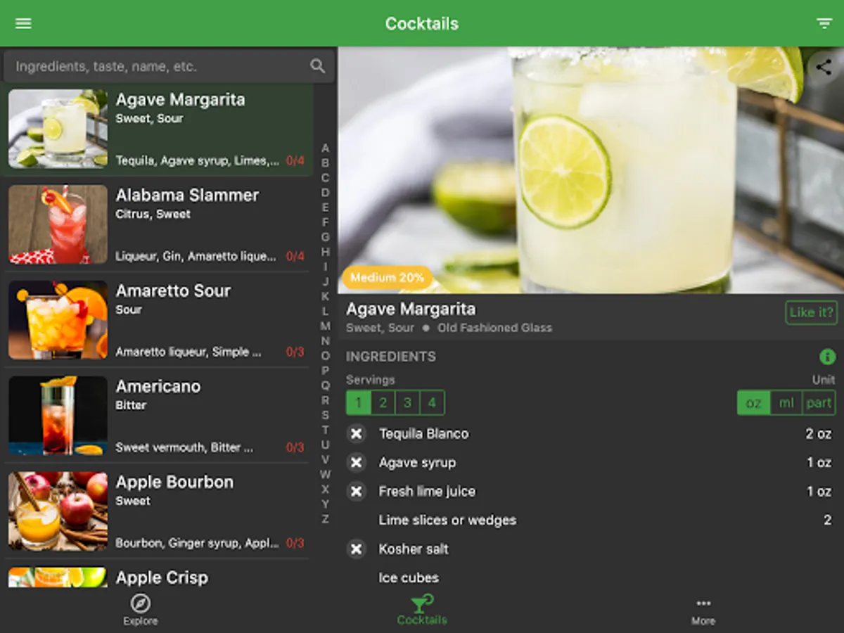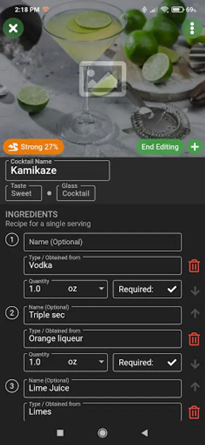 Edit the cocktails based on your taste: change the ingredients quantity, add/delete ingredients.